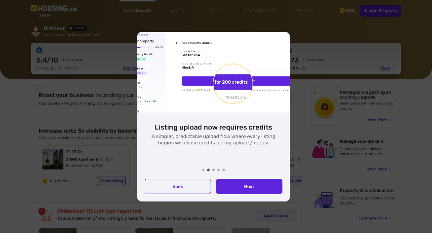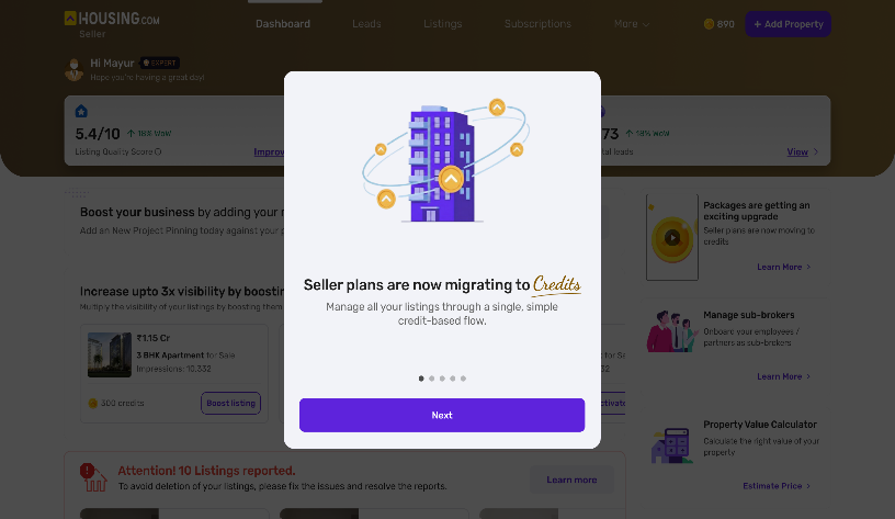 Housing would be launching WhatsApp Customer Campaigns to ensure that every important information related to timelines and updates is being shared with everyone. The seller dashboard is also being upgraded with certain nudges to communicate as and when the New Model goes live. (See the image below for reference)